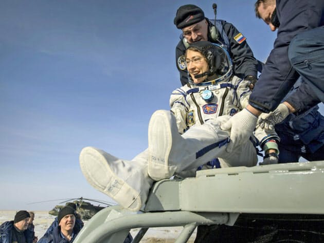 宇宙に328日、女性最長 「記録抜いて」と米飛行士(写真=共同) - 日本経済新聞
